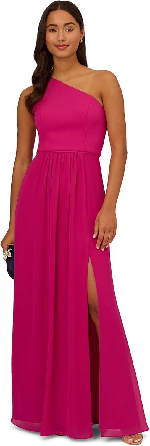 Be the first to review “Adrianna Papell Floral Print Chiffon Gown with One Shoulder Neckline(Bright Magenta)”
