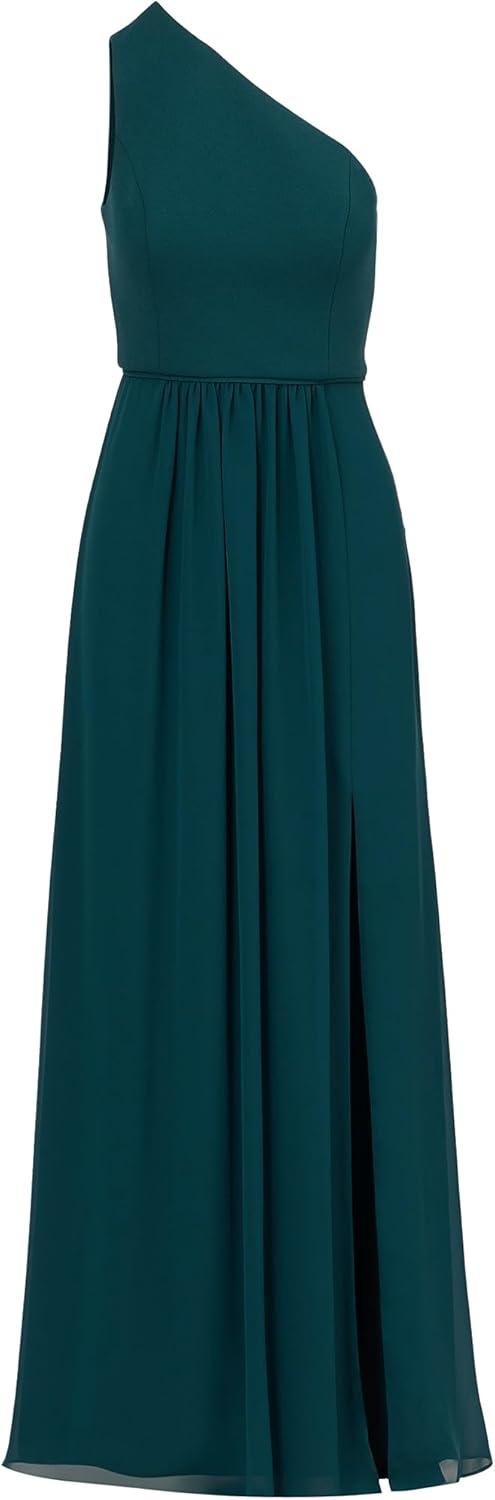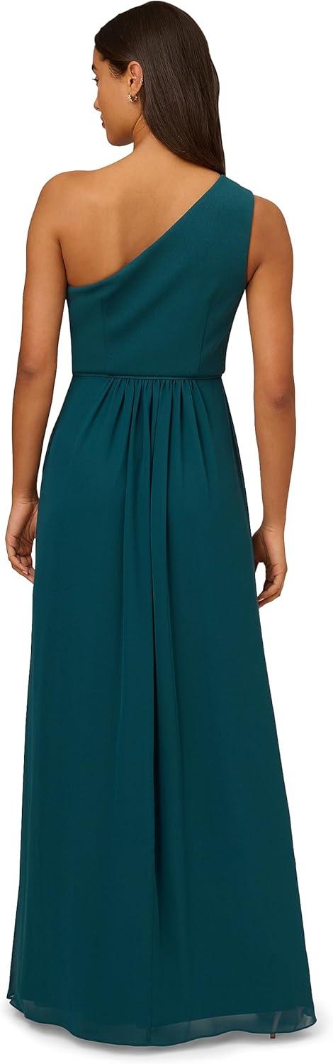 Adrianna Papell Floral Print Chiffon Gown with One Shoulder Neckline(Hunter)