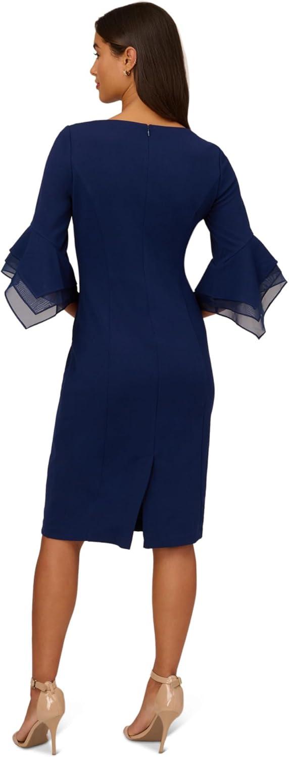 Adrianna Papell Knit Crepe Tiered Sleeve Dress, Navy Sateen,(Navy Sateen)