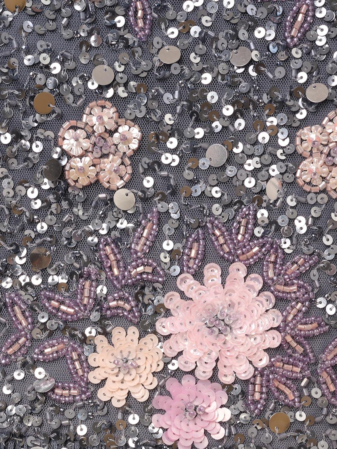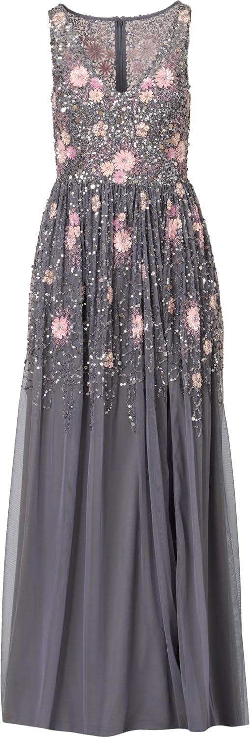 imageAdrianna Papell Womens Beaded Mesh Long DressDusty Blue Multi