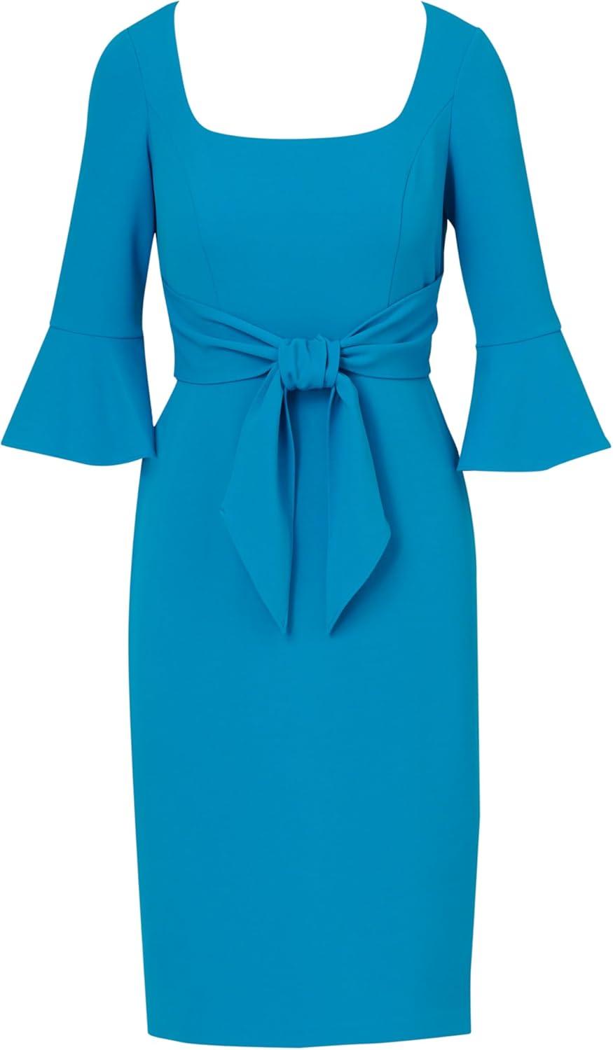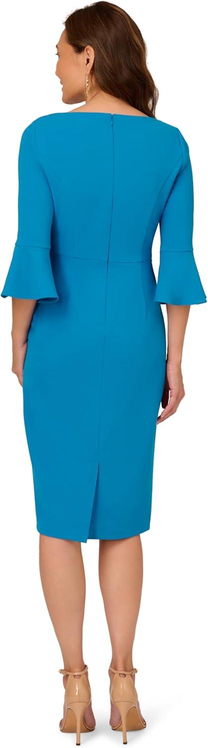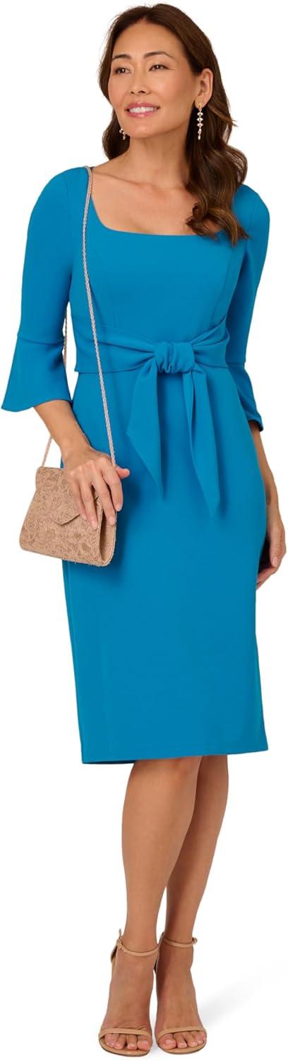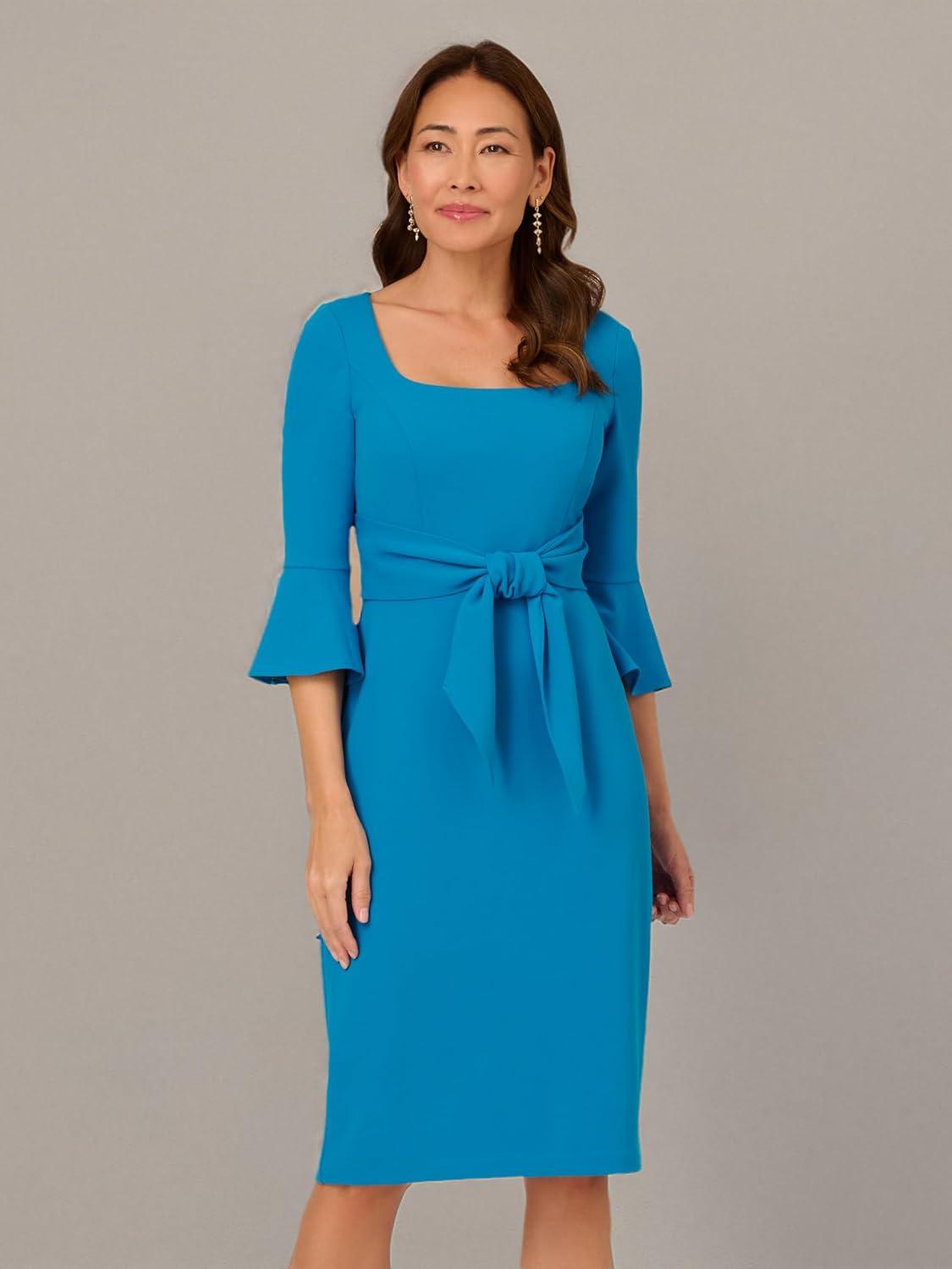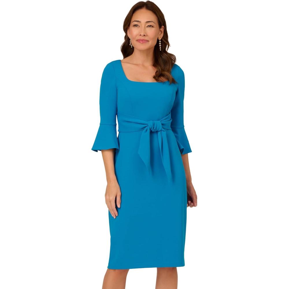 Adrianna Papell Women’s Bell Sleeve Tie Front Dress(Deep Cerulean)