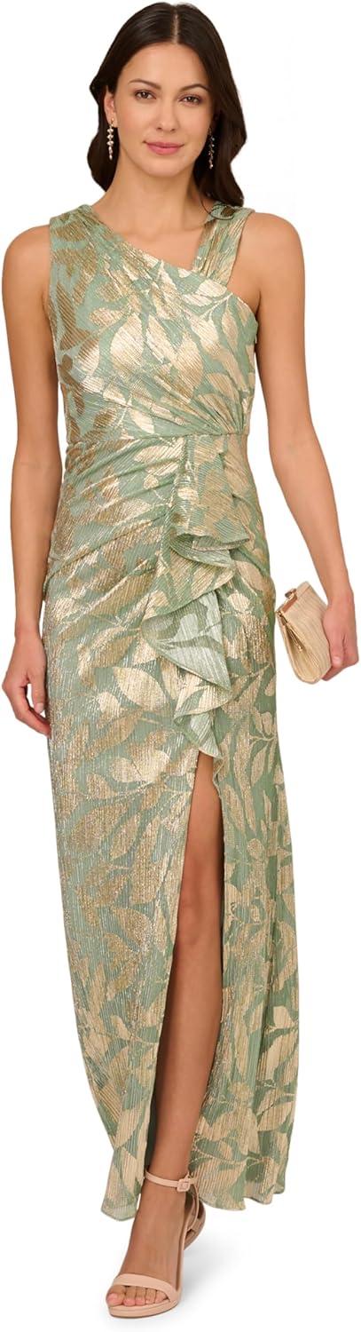 Adrianna Papell Women's Foil Asymmetric Gown(Sage/Gold)