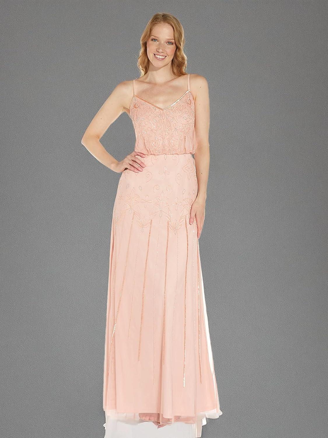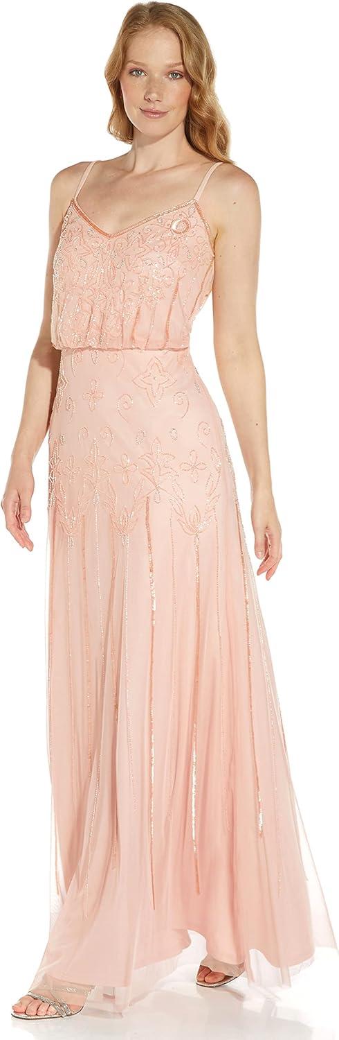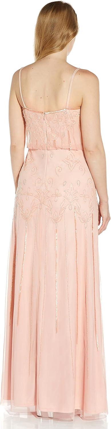 Adrianna Papell Women’s Long Beaded Blouson Gown(Blush/Gold/Pink)