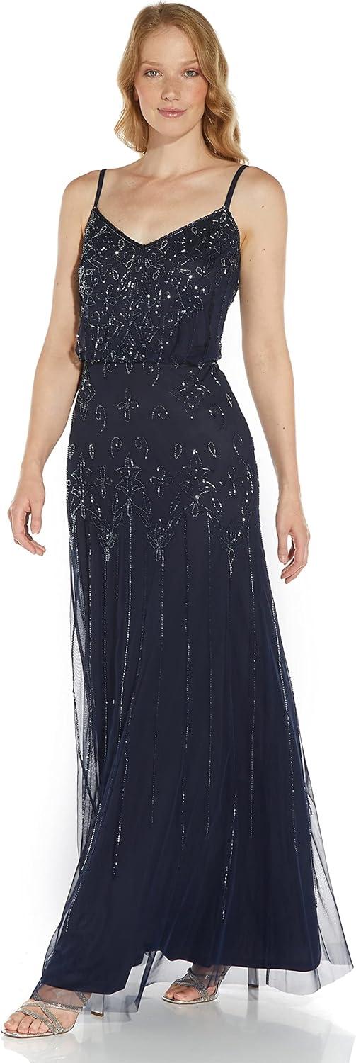 Adrianna Papell Women’s Blouson Beaded Gown(Blush/Gold/Pink)