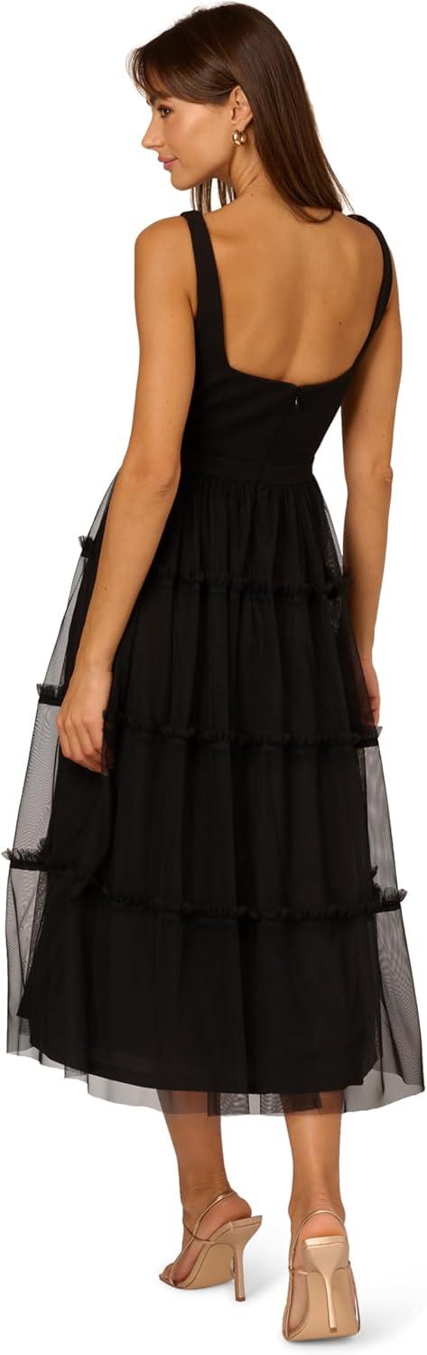 Adrianna Papell Women’s Knit and Mesh Midi Dress(Black)
