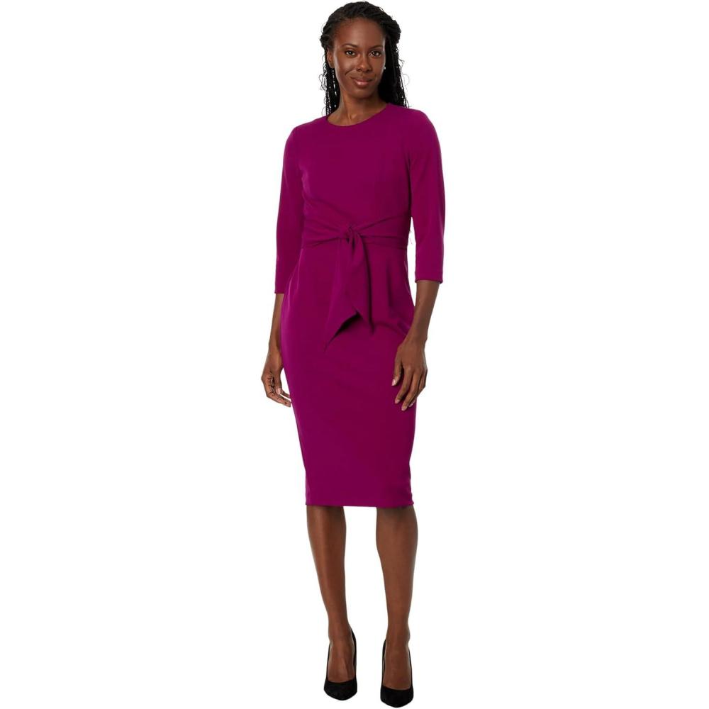 Modern yet sophisticated, this dress will make your day. This day dress features a boat neckline, three quarter sleeves, and a fitted sheath skirt. A self-tie bow at the waist accentuates the figure and is adjustable to the figure Perfect from the office to bridal showers to brunch, this sweet midi dress is the picture of elegance for any event. Crafted from crepe fabric, this dress has some stretch and offers a zipper closure at the back. Add a clutch and stud earrings to complete this effortless dress.