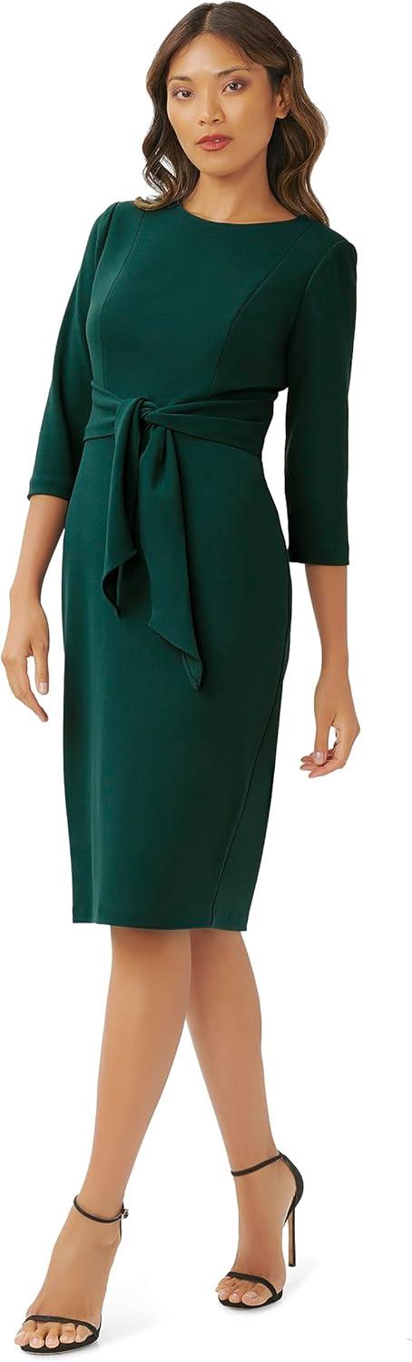 Adrianna Papell Womens Knit Crepe Tie Waist SheathDress(Hunter)