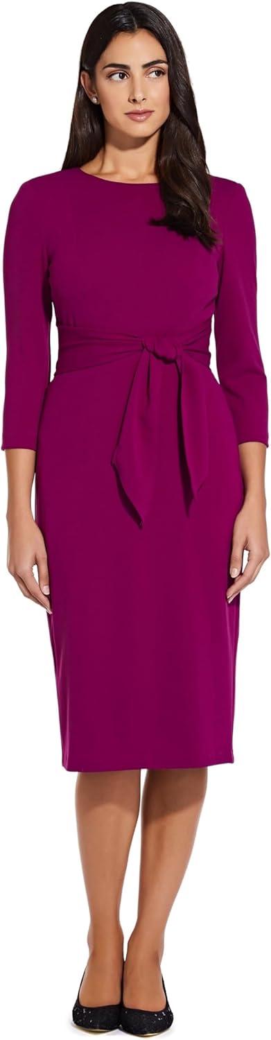 Adrianna Papell Womens Knit Crepe Tie Waist SheathDress(Wildberry)