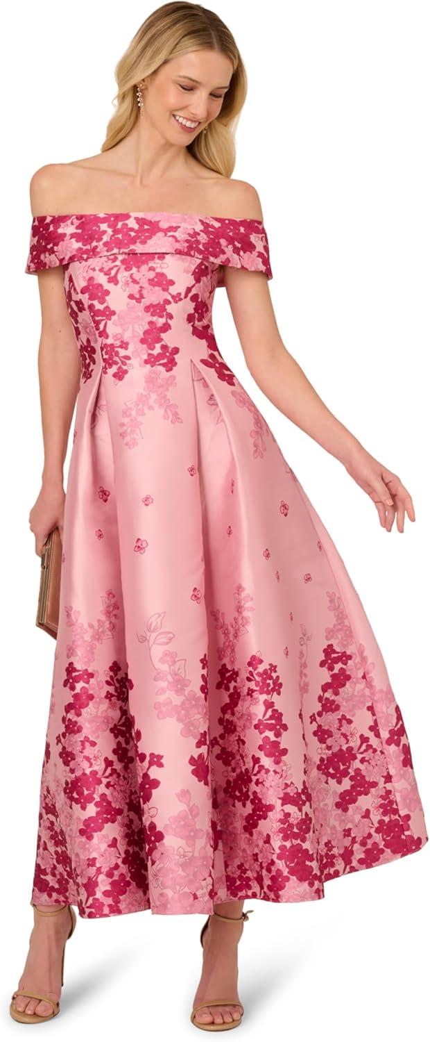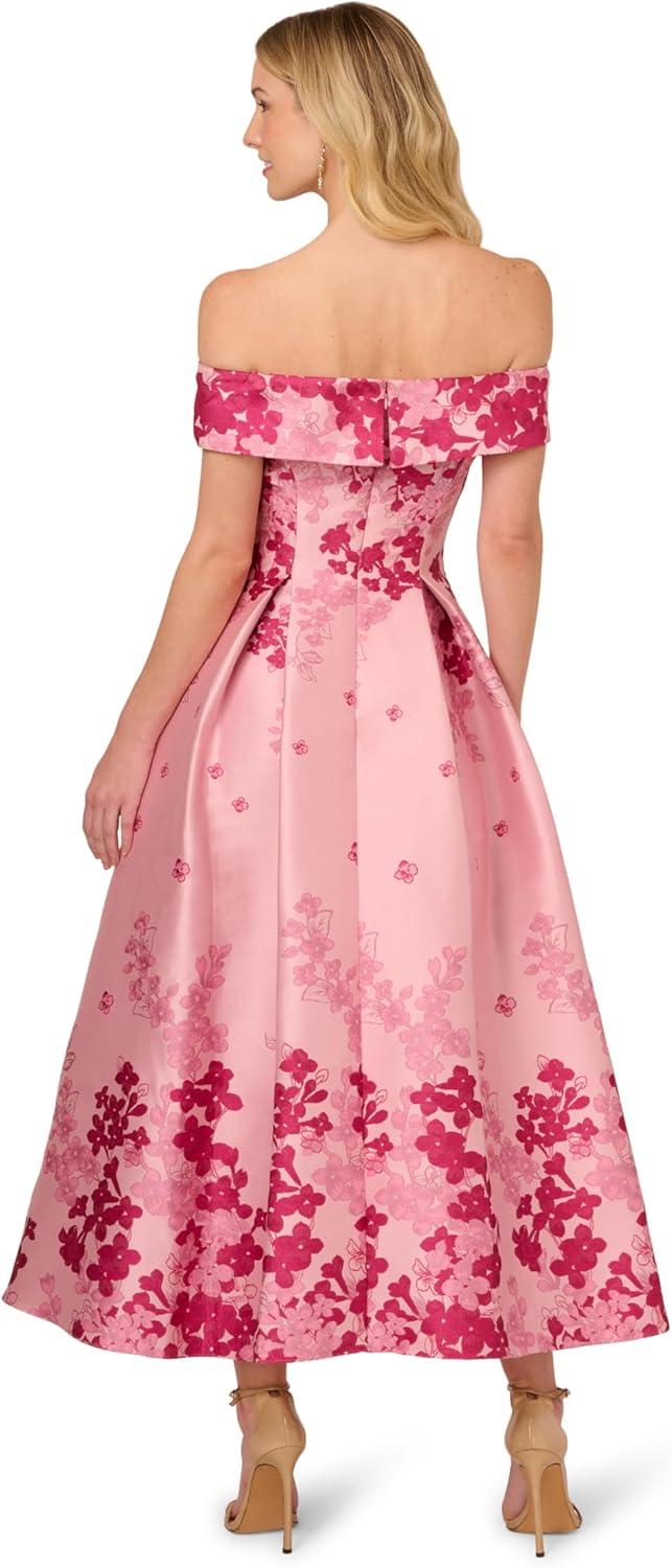 Adrianna Papell Women’s Off-Shoulder Dress(Pink Multi)