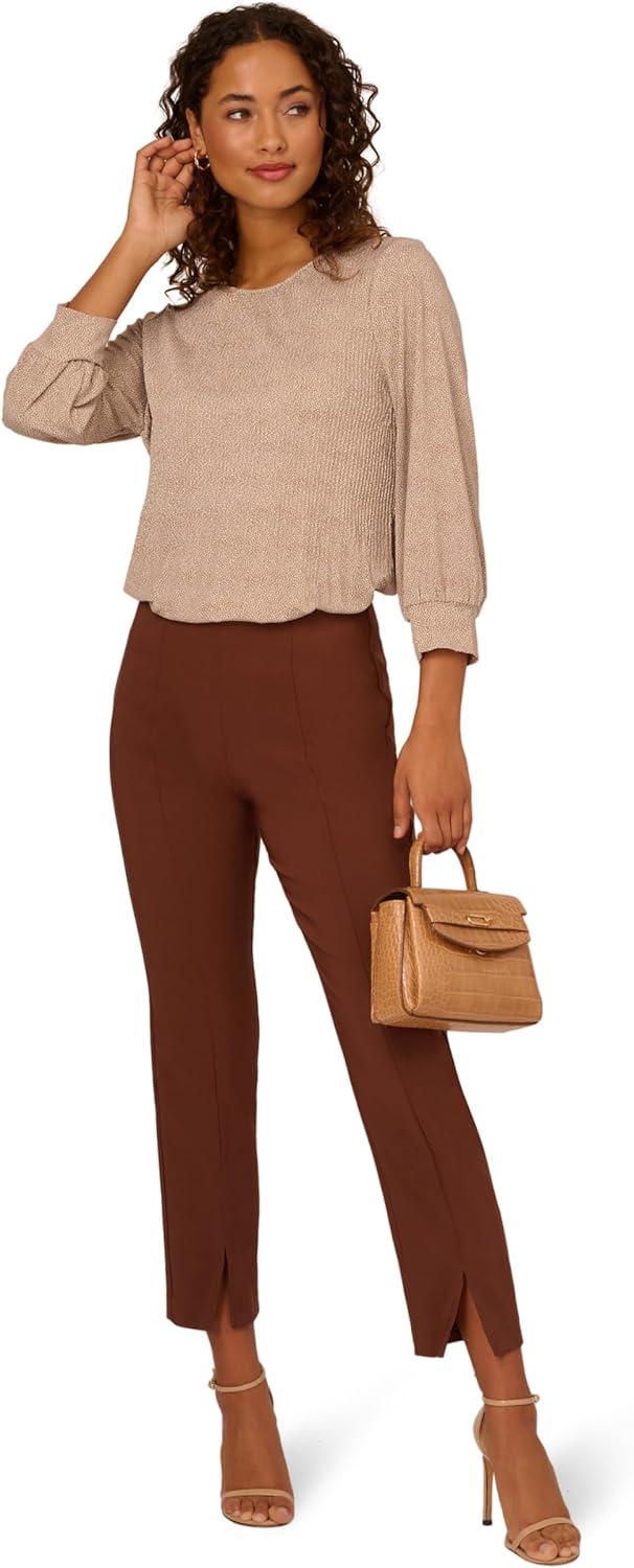 Trend-forward details set these pants apart. These pants feature cropped legs, a slim fit, and split hems. Crafted from knit fabric, these pull-on pants have faux pockets at the back. Paired with your favorite tops and sweaters, these tailored pants are a versatile look.