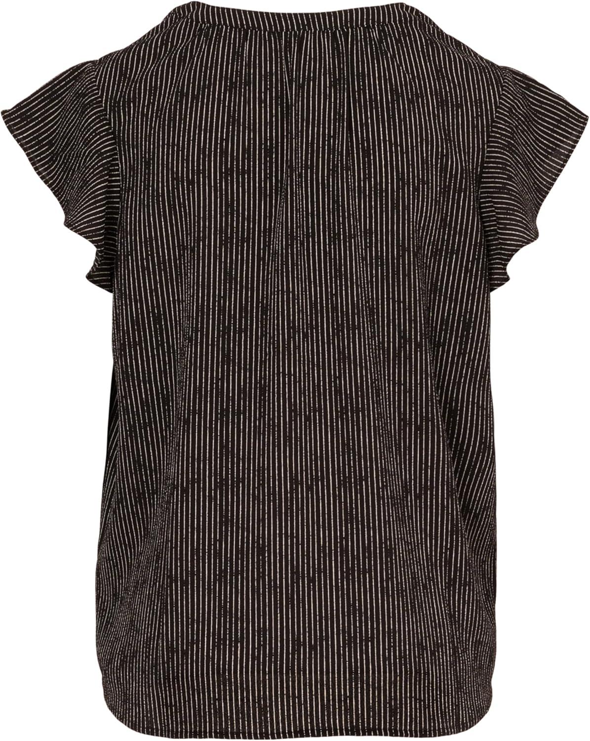 Adrianna Papell womens Solid Short Ruffle Sleeve Popover Blouse(Black/Ivory Sketch Stripe)