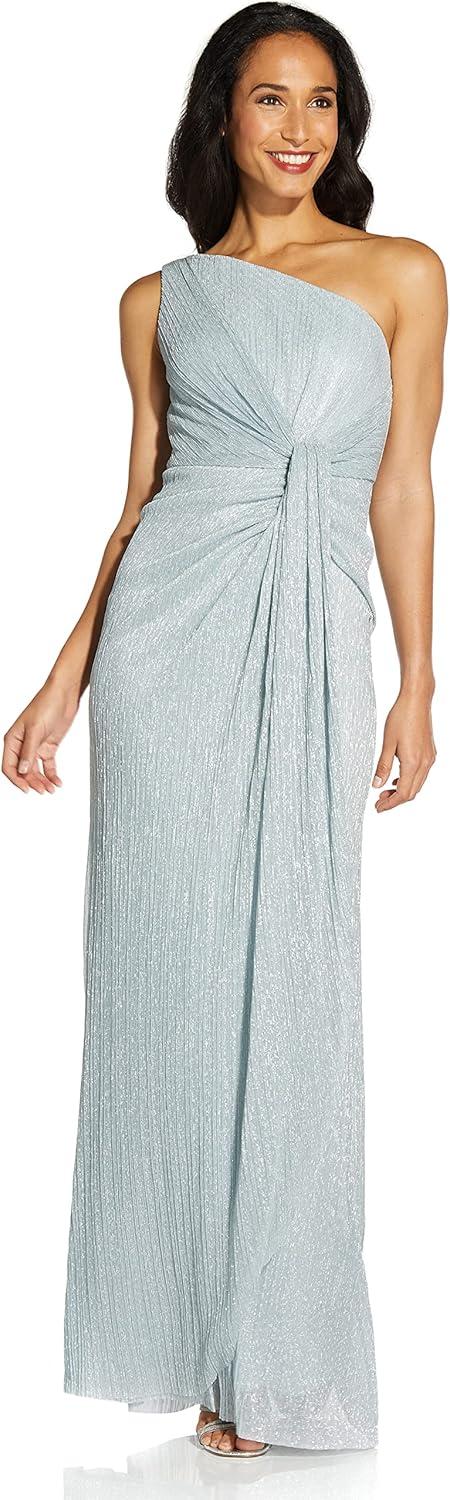 Adrianna Papell Women’s Stardust Pleated Draped Gown(Green Slate)