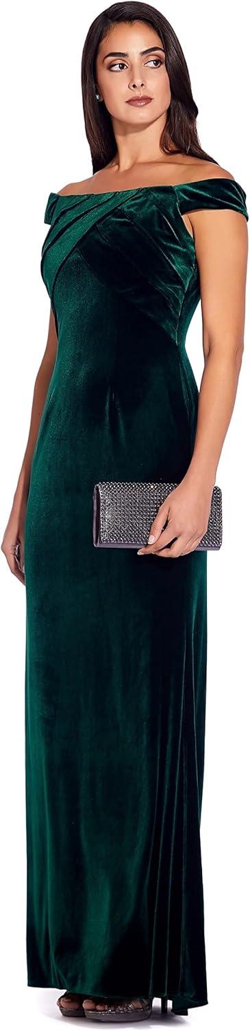 Adrianna Papell Womens Stretch Velvet Dress(Emerald)